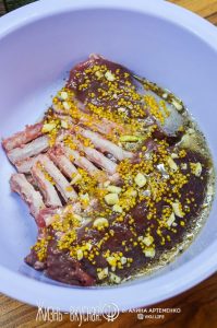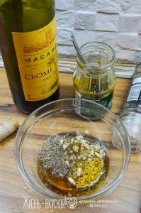 - Смешайте все ингредиенты для маринада (чеснок порубите или пропустите через пресс).