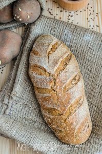 Хлеб этот – концентрат пользы и вкуса, он пшеничный, с частью цельнозерновой муки, солод придает приятный аромат и легкую кислинку, семена льна – легкий ореховый привкус и создают отличную неоднородную текстуру, а картофельный отвар и вовсе творит чудеса с тестом. Благодаря картофельному крахмалу в отваре эффект получается близким к завариванию муки для хлебного теста: мякиш становится более пористым и пышным, упругим, а хлеб дольше сохраняет свежесть.