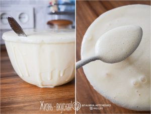 - Когда оно вырастет, станет очень воздушным и пенистым, это значит, что можно приступать к выпечке.