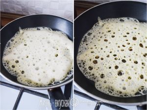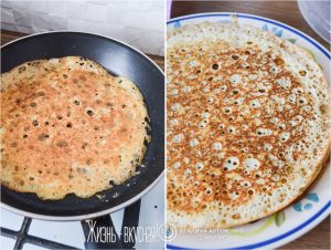 - Выпекайте ажурные блины на сухой сковороде. Они абсолютно не прилипают, отлично переворачиваются. Прелесть просто!