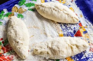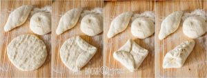 - Брожение теста 2,5-3 часа с одним складыванием в середине процесса брожения. После этого тесто разделите на 3 части, подкатайте в шар и дайте 15 минут отдохнуть, чтобы тесто немного расслабилось. Затем шар бережно расплющите ладонью, подогните подобно конверту края и защипите вареничком. На фото виден процесс формовки.