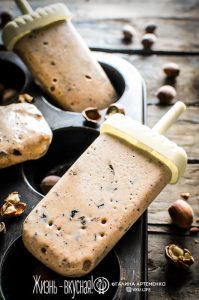 - Я разложила готовое мороженое по формочкам для эскимо и дополнительно проморозила в морозильной камере в течение 3-4 часов.