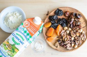 - Когда мороженое достаточно загустеет, добавьте в него мелко нарезанный чернослив и курагу.