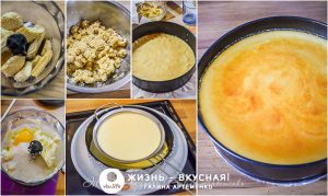 В остальном же этот чизкейк готовится так же, как и другие. Будете заливать чизкейк топингом, и его румяная верхушка вас не смущает, то готовьте его в духовке на водяной бане. Если же выпекать без водяной бани, верхушка получится светлой, а зарумянятся бока. При выпечке без бани температуру лучше дать чуть ниже. И обязательно следите, чтобы не перепечь чизкейк: на момент выключения духовки чизкейк должен слегка подрагивать по центру. По мере остывания он дойдет до нужной степени готовности, и останется при этом нежным. Если же чизкейк перепечь, возрастает риск трещин сырной массы, а также текстура ее будет более плотной.