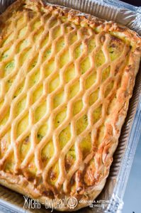 - Выпекается такой пирог при температуре 200° в режиме конвекции около 30 минут – лучше ориентироваться на румяный цвет.