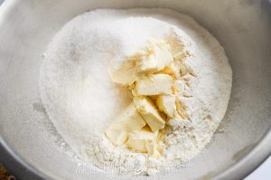 - Приготовление теста очень простое. Просто смешайте вместе все ингредиенты, скатайте тесто в шар, заверните его в пленочку и отправьте его в холодильник на 2-3 часа, чтобы масло в его составе хорошенько застыло.