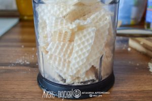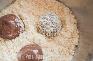 - Измельчите в крошку вафли и обваляйте в этой крошке получившиеся шарики.