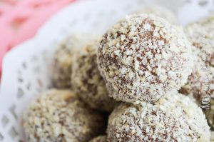 - После этого при помощи чайной ложечки и мокрых рук накатайте быстро шариков диаметром около 2 см. Быстро, потому что они могут начать размягчаться от тепла рук, а нам это не нужно.