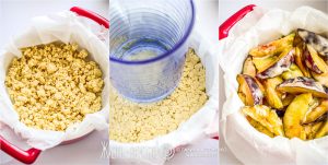 Он имеет хрустящую рубленую основу, а сами сливы просто выкладываются сверху с небольшим количеством сахара и крахмала, который в духовке загустит выделяющийся сок.