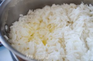 - Подготовьте этим временем все для гарнира. У меня просто отваренный, но такой невероятный рис и запеченная со сливочным маслом цветная капуста (запекать ее буду одновременно с курицей).