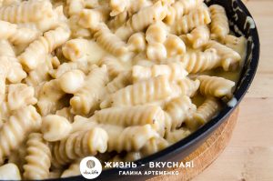 - Этим временем макароны сварились, и я откидываю их на сито.