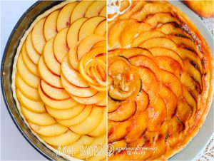- 2-3 нектарина или персика нарезать тонкими пластинами (персики перед этим лучше всего ошпарить и снять кожицу)