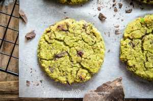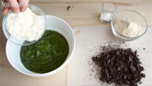 Сегодня готовим очень интересное печенье. Это печенье без сахара, без белой муки, оно постное (веганское) – в нем нет яиц, масла, молочных продуктов. Готовится оно на основе шпината с добавлением мяты и кусочков тертого какао. Очень вкусное!
