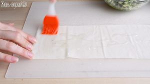 • Смажьте полоску теста растительным маслом (для тофу-варианта) или сливочным (для лакто-варианта).
