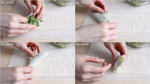 • Из половины полосок формуйте пирожки с творогом, из половины — с тофу.