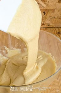 - Далее введите в тесто остальную часть муки и месите тесто до тех пор, пока оно не станет очень эластичным и гладким.