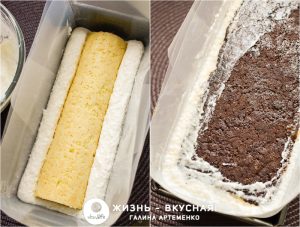 К сожалению у меня не было подходящей округлой формы, а поэтому я воспользовалась стандартной формой для кекса. Получилось кубично =)