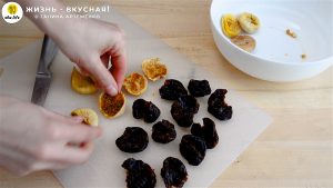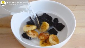 - Первым делом подготавливаю сухофрукты: чтобы они стали мягкими, я заливаю их горячей водой и оставляю минут на 10-15. Инжир или чернослив — выбор за вами. Что вы любите больше?