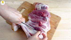 - Я буду готовить рульку, вырезав из нее кость. Во-первых, так она будет занимать меньший объем во время приготовления. Во-вторых, так я приправлю не только рульку снаружи, а и мясо внутри. А в-третьих, на этой кости я сварю бульон.