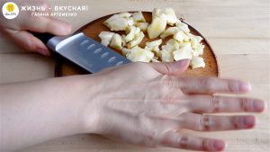- Раздавливаю зубчики чеснока — так они лучше отдадут свой аромат.