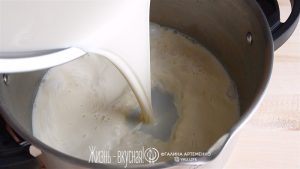 • Перелейте молоко в кастрюлю и отправьте на плиту.