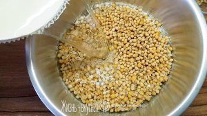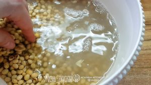 • Залейте сою большим количеством чистой холодной воды. Оставьте набухать на ночь.