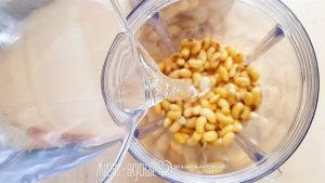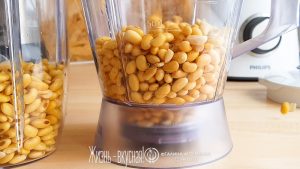 Для приготовления соевого молока на каждые 100 г сухой сои потребуется 700 мл воды с учетом той, которую она впитает за время набухания, поэтому необходимо будет взвесить сою после замачивания. Я готовила молоко из 800 г сухих бобов.