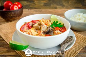 - Готовый суп я пробую на соль. Если необходимо, присаливаю (так как у меня есть рыбный соус, то использую его). Выжимаю сок лайма, чтобы получить полную гармонию вкусов.
