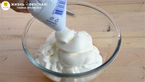 - Очень важно брать для крема жирную сметану — 25-30%. Она густая. Крем с такой сметаной не станет очень жидким, а вот со сметаной 15-20% может разжижиться, и переслаивать торт будет неудобно.