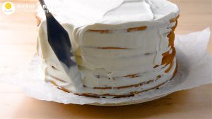 - Остатками крема отделываю бока, заполняю пустоты.