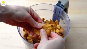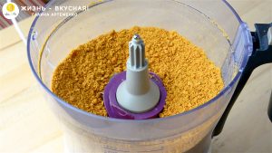 - Испеченные обрезки отправляю в чашу комбайна и измельчаю их в крошку.