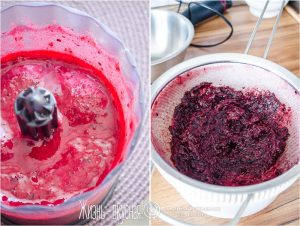 - Измельчите в блендере смородину и протрите ее через сито, чтобы избавиться от косточек и кожуры.