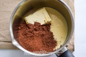 Масло, сгущенку, соль и какао выложить в сотейник и, помешивая, довести на маленьком огне до растворения масла и соединения всех ингредиентов.