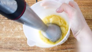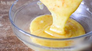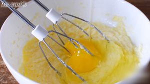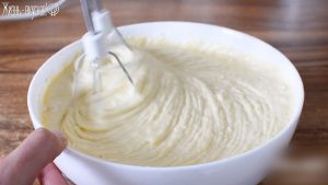 По одному введите яйца, продолжая взбивание. Помните, что яйца тоже должны быть комнатной температуры, иначе масло свернется.