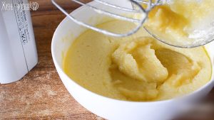 Взбейте тесто. После добавления муки не стоит взбивать тесто в течение слишком длительного времени – как только оно стало однородным и сухой муки больше не видно, тесто готово.