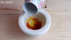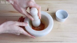 Первым делом нужно растереть шафран в ступке или другим удобным для вас способом до порошкообразного состояния.