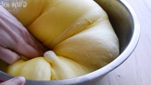 Если замешивать тесто вы планируете вручную, продолжайте вмешивать масло, а когда тесто полностью вберет его, месите тесто до гладкости.