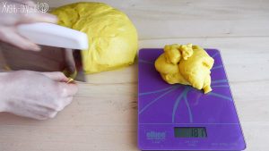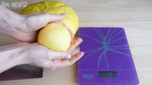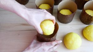 Я больше всего люблю куличи небольшого размера, на 1-2 порции. Я взяла вот такие маленькие бумажные формочки, рассчитанные на вес кулича в 200 грамм. Это тесто очень хорошо подходит, поэтому я дам чуть меньший вес – делю тесто на порции весом по 180-185 грамм. Из всего объема теста у меня получается 8 штук.