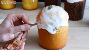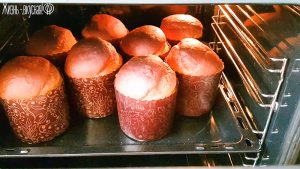 Я немного поторопилась, так как хотела успеть снять видео до захода солнца, и отправила куличи печься чуть ранее, отчего образовались подрывы верхушки. Впрочем, они некритичные, и после украшения они не будут заметными.