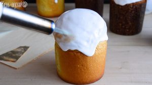 Завершаю отделку при помощи кулинарной горелки. Это сформирует тонкую корочку на глазури и придаст легкий карамельный оттенок вкусу. Если у вас такого гаджета нет, просто оставьте глазурь подсохнуть естественным образом.