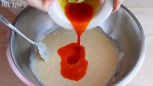 Теперь влейте в опару ранее замоченный шафран. Яркая ароматная жидкость к этому времени уже успеет остыть до нужной температуры.