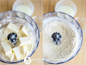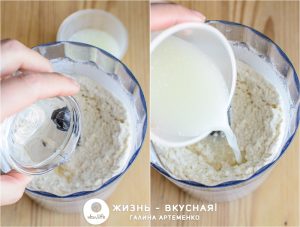 Формула для приготовления рубленого теста всегда 3:2:1. На фото я использую сыворотку – в ней есть кислота, и лимонный сок/кислоту я дополнительно не ввожу. Если используется вода, кислоту вводите. Кроме того, факультативным, но очень желательным является добавление небольшого количества алкоголя – так тесто получается еще круче по текстуре.