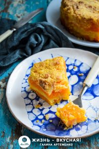 После выпечки дайте пирогу остыть, и только потом извлекайте из формы – он очень нежный, рассыпчатый. После остывания он стабилизируется и вы с легкостью сможете нарезать его на порции.