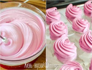 - Быстро взбейте остывшее пюре с белком в пышную массу и заварите ее горячим сахарным сиропом. Взбивайте до твердых пиков и умеренного остывания, когда агар еще не совсем схватился, но уже начинает «действовать».